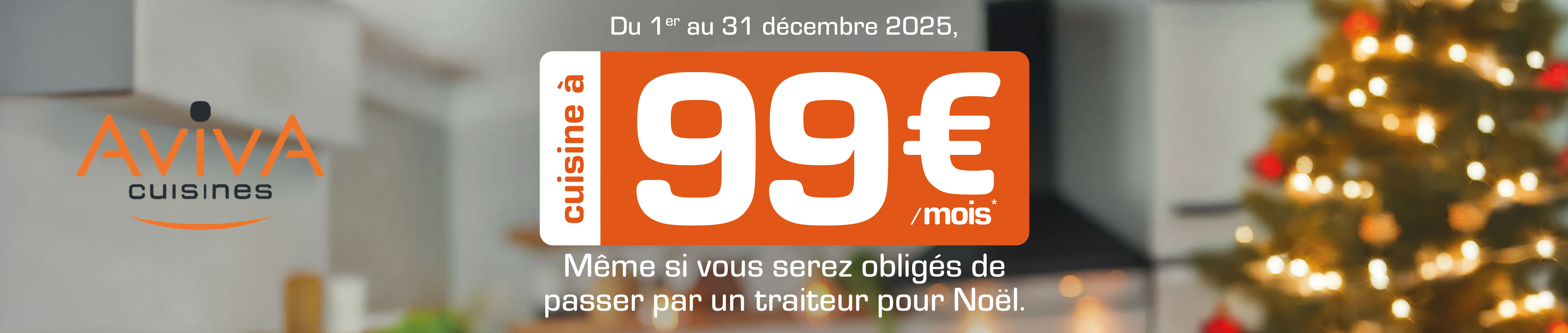 Profitez d’une cuisine à 99€/mois du 1er au au 31 Décembre chez Cuisines AvivA. Venez vite découvrir l'offre dans notre magasin ! Nous aurons plaisir à discuter de votre projet autour d'un café.